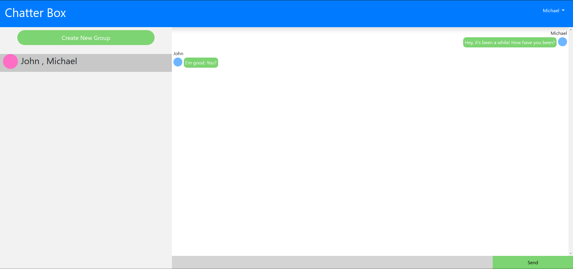 ChatterBox is an instant messaging platform I developed to explore websocket programming and client-server synchronization. On the frontend, I built a dynamic UI using the Handlebars framework that supports multiple chat rooms and live message updates. The backend is powered by Node.js, Socket.io, the Passport library, MongoDB, and Mongoose. The entire foundation of the project relies on the websocket management that comes from socket.io. This is what makes it possible to have real-time communication with multiple users, allowing for group chats in addition to private messages.